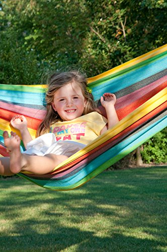 - Voilà un produit comme on les aime à destination des enfants : à la fois gai avec ses couleurs arc en ciel et sécurisé et adapté à nos bambins avec ses suspensions fermées. Un succès garanti! Faites vous plaisir en famille, à chacun son hamac, pour la sieste de papa et un autre pour le divertissement d